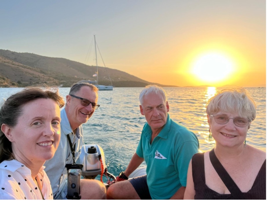 While Pinot Gris made for Corfu Island, Irini headed further south to the harbour town of Syvota. This was another fabulous spot tucked in and safely anchored in a sheltered setting between two islands. It was also an ideal spot for the crew to get some swimming and snorkelling in, and visit the local town. However, once settled we received a severe storm warning (on our phones!) with rain, thunder and lightning, plus strong winds heading our way. But the wind didn’t pick up that much where we were and for Irini, it turned out to be a really pleasant evening, and the crew enjoyed G&Ts or Metaxa and peach juice pre-dinner cocktails, and a meal aboard washed down with plenty of wine. Pinot Gris was safely in harbour in Petriti but did suffer with very heavy downburst of rain and strong winds.
