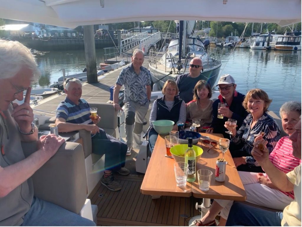 Friday 16 May – Chichester Marina: The advance party gathered at Chichester Marina, where JUS LYMIN’ is berthed. NICKNACK was also in the marina, taking part in a wonderful charity sailing event for disabled children. RIPTIDE arrived later in the afternoon after a sunny lunch stop at East Head. The group caught up over a lively dinner at Chichester Yacht Club and shared plans for the weekend ahead.